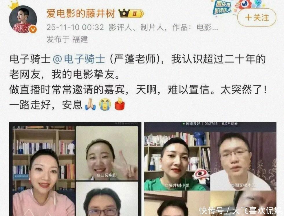 严蓬(网名电子骑士)因病于11月9日晚离世,家属已于11日发布讣告,多位科幻与影视从业者证实并痛悼